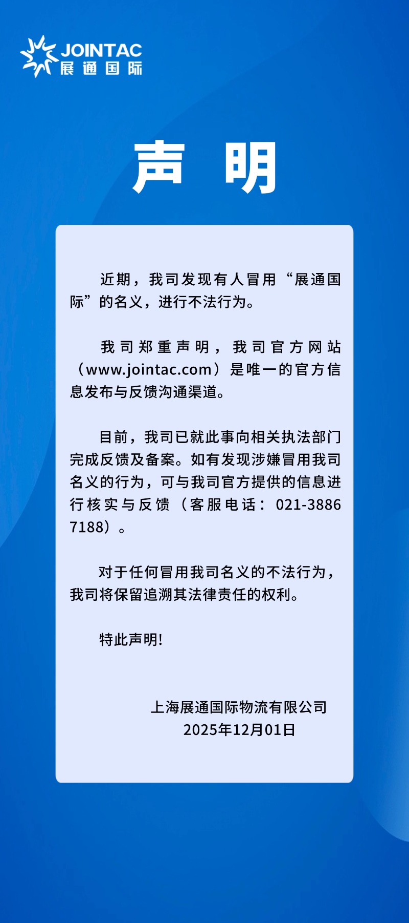 冒用“展通国际”名义进行不法行为的声明